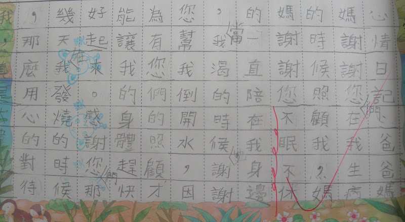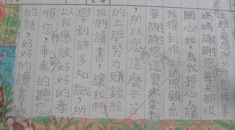 最喜歡最後一句,希望媽媽能一直在我身邊支持我、為我加油! ↑自我反省多於感恩,又是一個會自省的小孩。