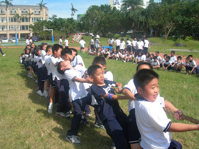 今天下午的綜合活動課是拔河比賽,小朋友在上午第四節的體育課已經先行比試過了。
